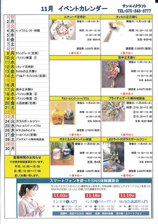 11月のイベントカレンダーができました🎵
