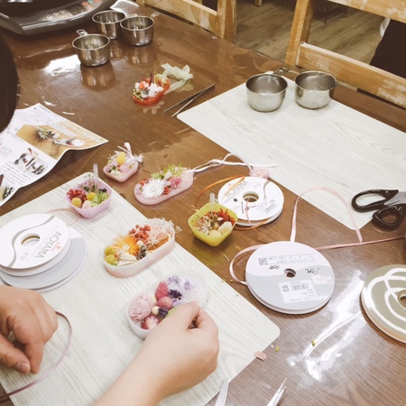 今日は、人気のアロマキャンドルサシェ体験会からの中継で〜す