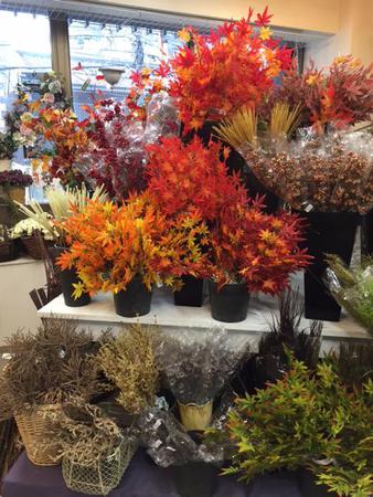 こんにちは! サンエイstaffです(⌒▽⌒) 昨日、今日の二日間で秋物の花や実、雑貨を店頭にディスプレイいたしました! 今回も東京堂のスタッフさまにお力を貸していただき、素敵な店内に仕上がりました😊 -